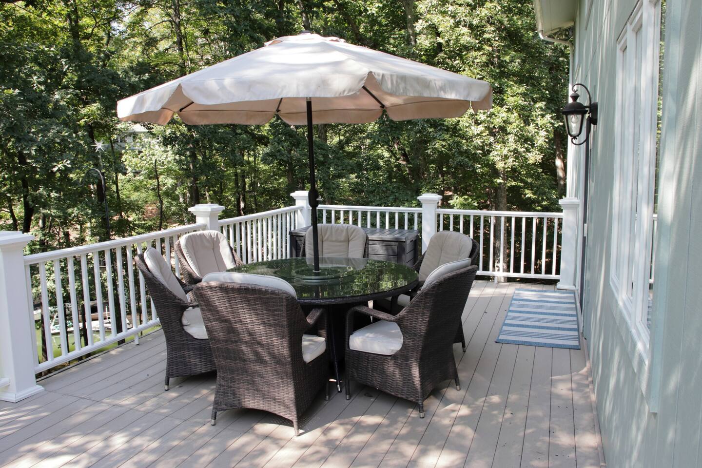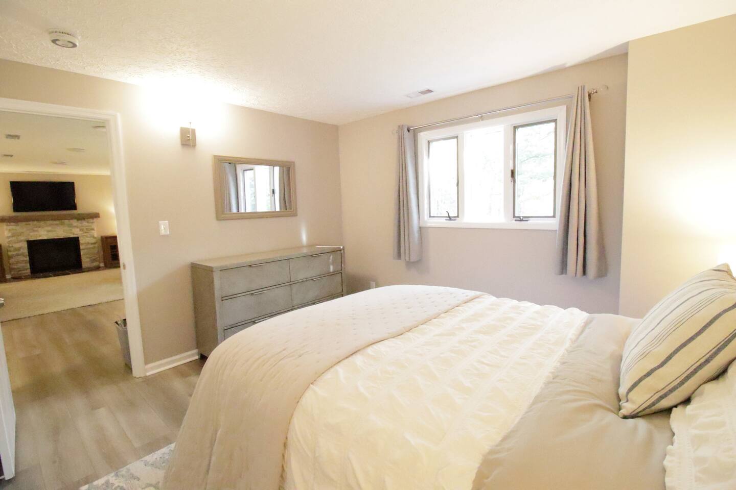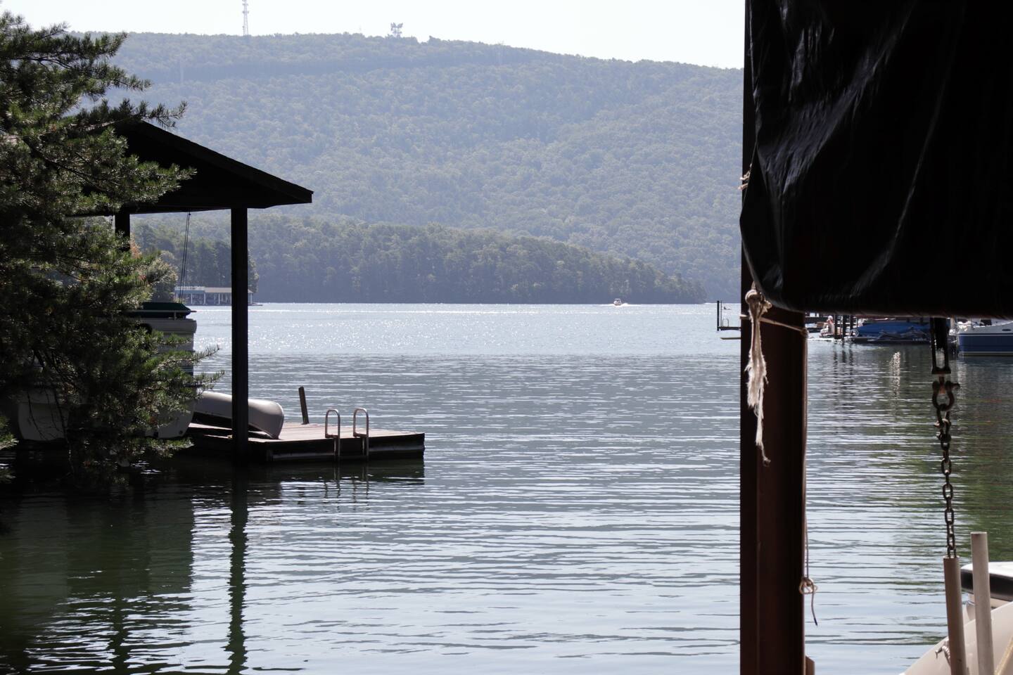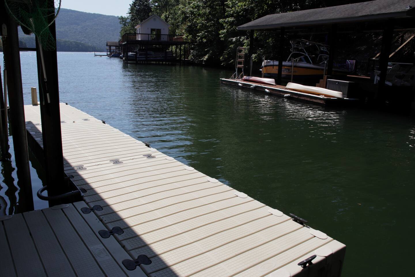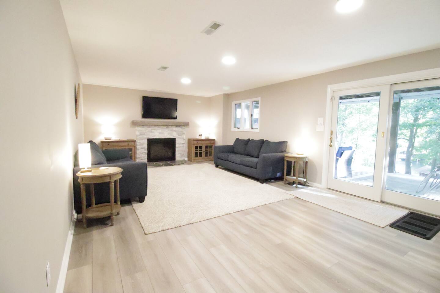This charming home features cozy bedrooms, a nursery, spacious loft, and 3 full bathrooms, perfect for family or friends. Enjoy modern comforts like high-speed wireless internet, air conditioning, outdoor dining, dock and jet ski ramp, and a fully equipped kitchen with electric stove and dishwasher. Kitchen essentials and laundry facilities are also provided for your convenience. Unwind and rejuvenate in a peaceful setting that feels like home away from home. The home is situated in a cove that is considered to be a "No Wake Zone." The three-story property can easily accommodate up to 8 guests. As you come into the home you will find a light-filled, double-height living room. Included in this welcoming space is a huge sofa, stylish decor, comfortable reading area with views of the lake, and gas fireplace with reclaimed wood mantel. This room is the heart of the home, providing a great space for the family to connect, play games, relax in front of the fire on cooler days, or watch a movie on the large smart tv (Wi-fi is included so you can stream shows with your own login). The main level living room leads out onto the large deck with views of the lake and mountains. This area includes a dining table and comfortable chairs, umbrella for shade on sun-filled days, and gas grill. An ideal place for enjoying meals al fresco, a morning coffee, or watching kids play out the back. The living room connects with an open plan and well-appointed kitchen/dining space with all the essentials for preparing meals in the comfort of this lakeside haven. The coffee and tea bars are a great way to start the day or bring it to a warming end. There is a large dining table with bench seating and comfortable counter chairs around the functional island offering plenty of additional space for gathering, cooking, and spending time together. A high-chair and child-friendly cups, cutlery, and plates are included to make life easier for family vacations. The three private bedrooms offer 2 king-sized beds (main and upper level), one queen bed (lower level/basement), and toddler crib (upper level bedroom), while the spacious loft area (upper level) includes two double beds and hang-out space with toys and activities for kids (hidden away in case all guests are adults!). All the mattresses are medium-firm with the option to add or remove additional layers of padding (including memory foam toppers) for those that prefer a softer sleeping experience. Each floor of the home offers a full bathroom, ideal for multiple guests. Bath towels and linens are included. The basement is an ideal space to unwind and socialize at the end of the day, with smart tv (streaming available with your own login), games and books, comfy sofas, bar area with beverage fridge, and gas fireplace. This area opens out onto the lower patio and outdoor seating area, offering shade during the day and soft cafe lighting for evening use. There are plenty of things for any kids of any age to enjoy outside including mud-kitchen, water table, outdoor activities, and yard games. The fire pit with outdoor-use blankets and Adirondak chairs are a great way to spend an evening under the stars. Laundry facilities are also available for guests. The home sits on a wooded, 1.25 acre lot. Graduated steps take you down to the water with additional views of the lake and mountains. The peaceful cove is a great place for swimming, floating, fishing, and playing in the water. The dock and jet ski ramp, in 12 ft of water, are perfect for those with a boat or water sport toys. The private driveway can accommodate up to four vehicles. Boat ramp access within the community is also available to guests upon request and for an additional fee.