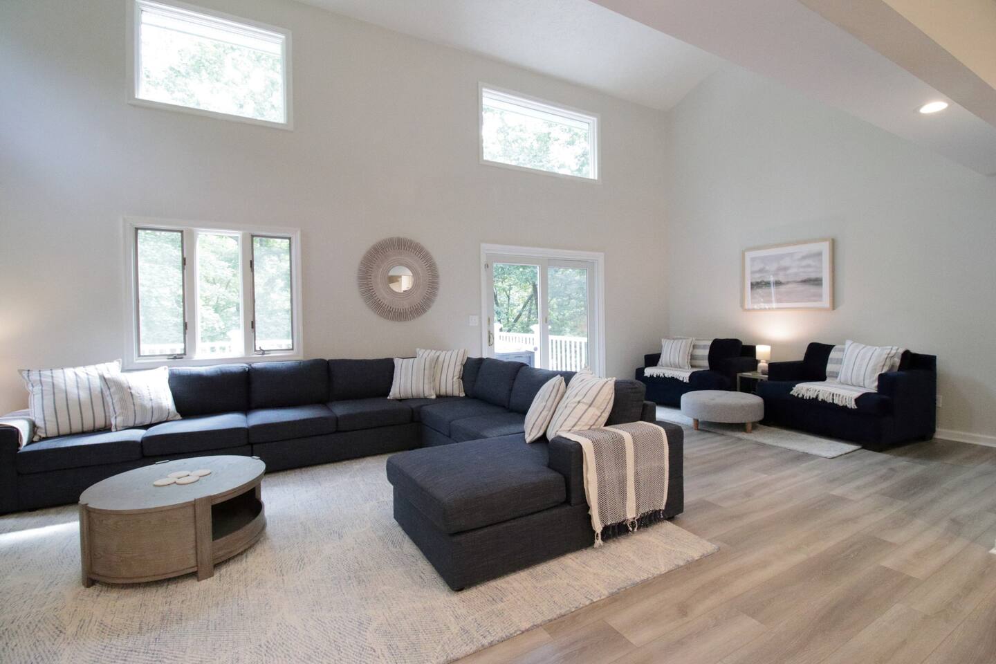 This charming home features cozy bedrooms, a nursery, spacious loft, and 3 full bathrooms, perfect for family or friends. Enjoy modern comforts like high-speed wireless internet, air conditioning, outdoor dining, dock and jet ski ramp, and a fully equipped kitchen with electric stove and dishwasher. Kitchen essentials and laundry facilities are also provided for your convenience. Unwind and rejuvenate in a peaceful setting that feels like home away from home.
